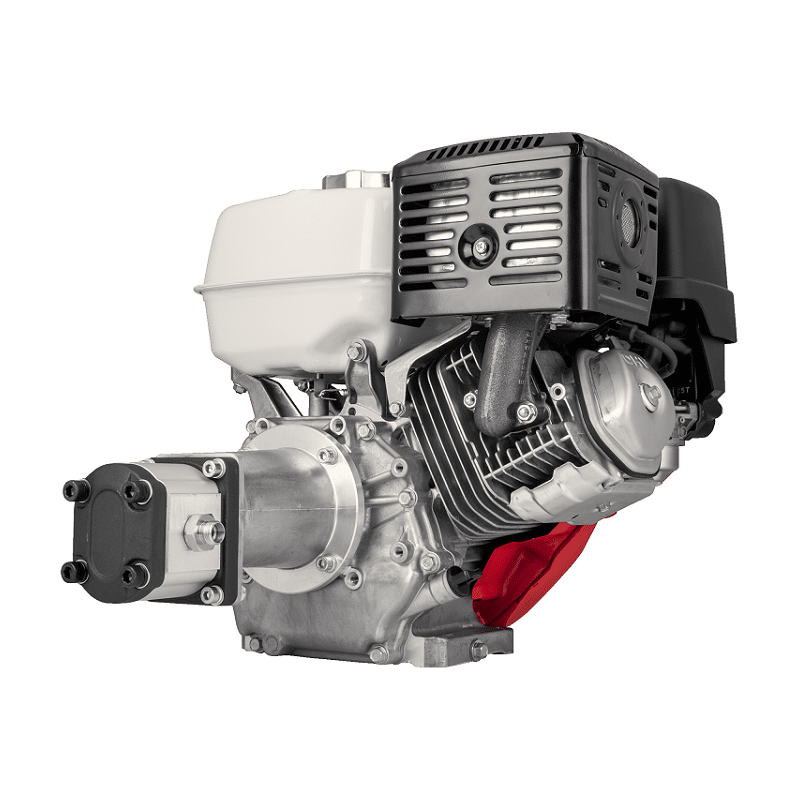 Moteur thermique GX390 + accouplement et pompe GR2 avec implantation dans le corps 1/2″ BSP en rotation droite et cylindrée à choisir.
