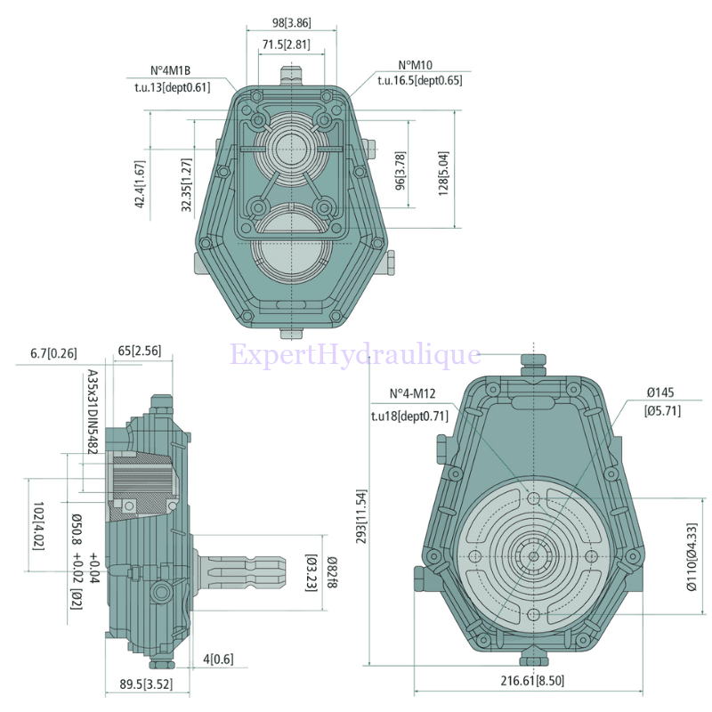 Multiplicateur pompe hydraulique en fonte rapport 3.8 c’est a dire qu’ à 540 tr / minutes la sortie du multiplicateur tourne a 2052 tr /mn.
