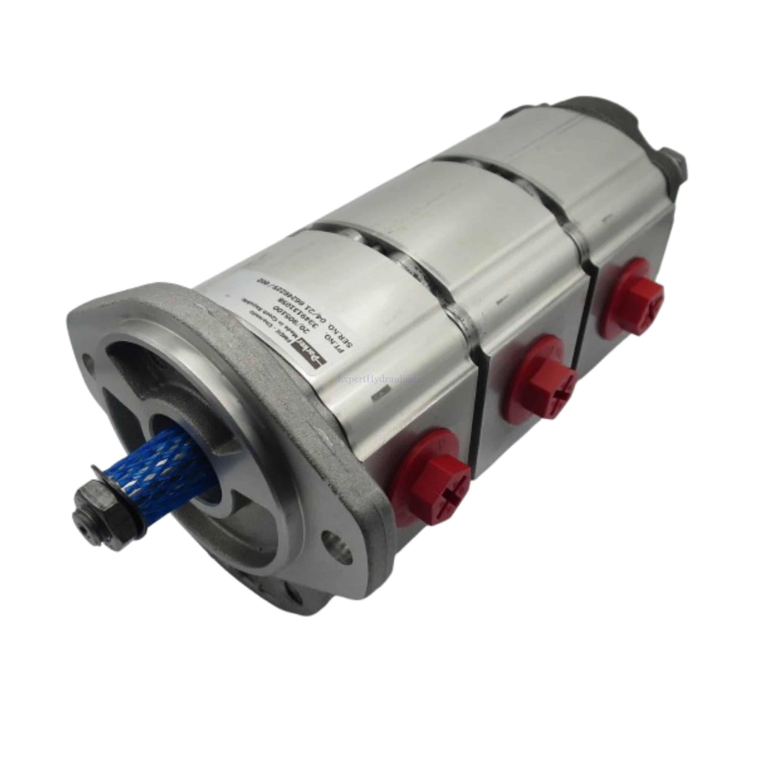 Pompe triple à engrenage hydraulique en aluminium : 20/90800 pour mini pelle JCB suivants : 802 et 802.7 . Arbre conique 1/5.